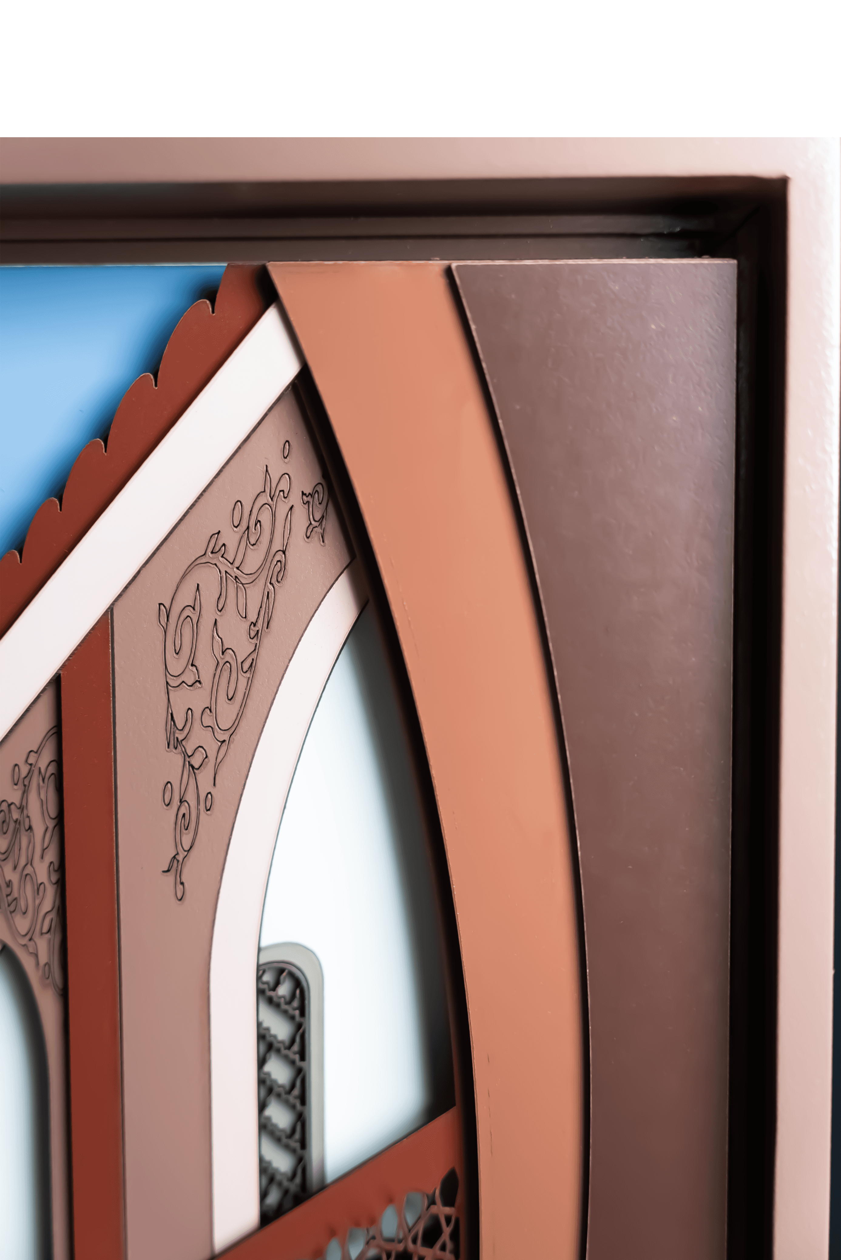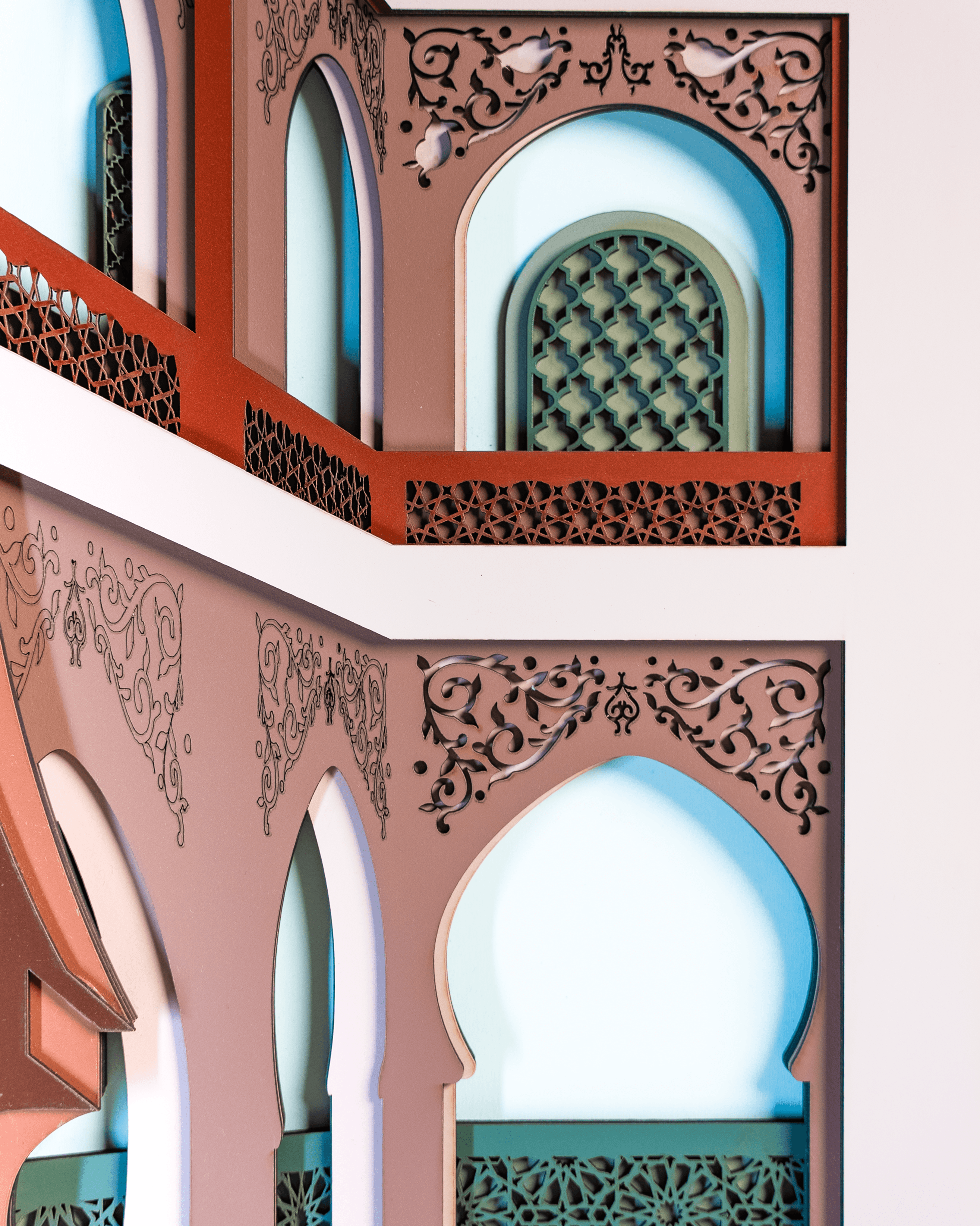 Travail artisanal minutieux Composition en relief inspirée des cours intérieures de riads Chaque tableau est unique Œuvre murale, prête à être accrochée
